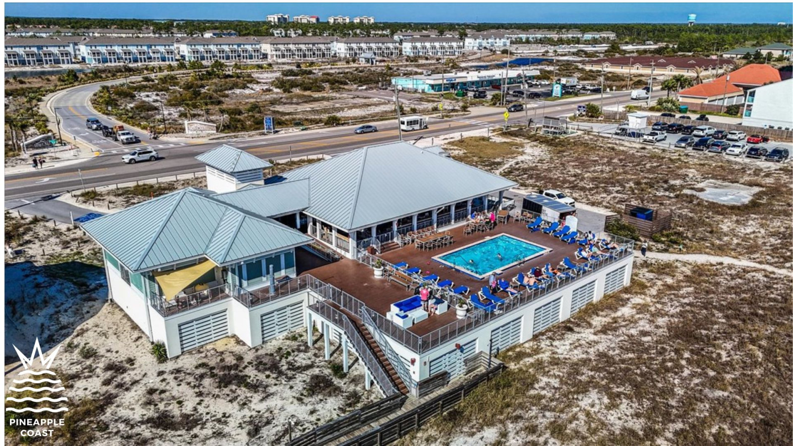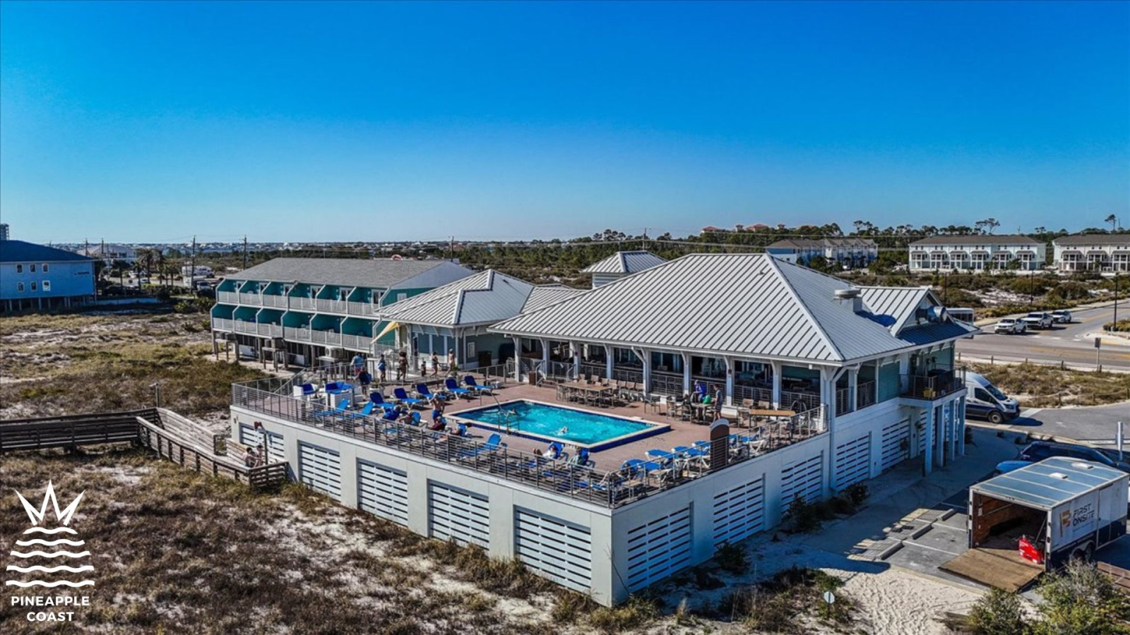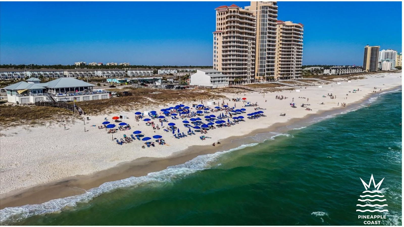 Guests can enjoy a private Gulf-front beach club with pool, bathrooms, showers, lockers, and full-service food and cocktail service. The beach club is located directly across from the main entrance on Perdido Key Drive, with free shuttle service available.