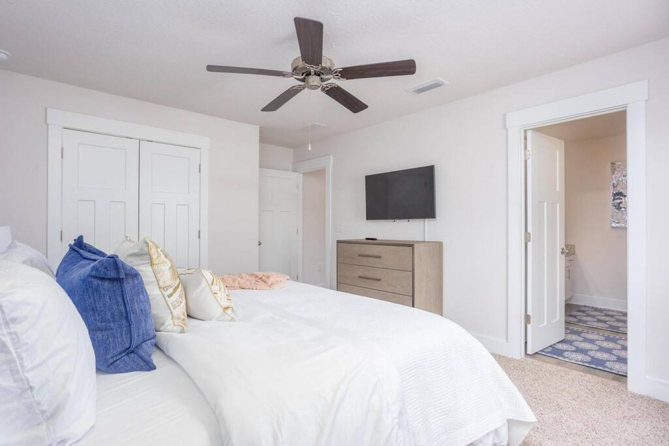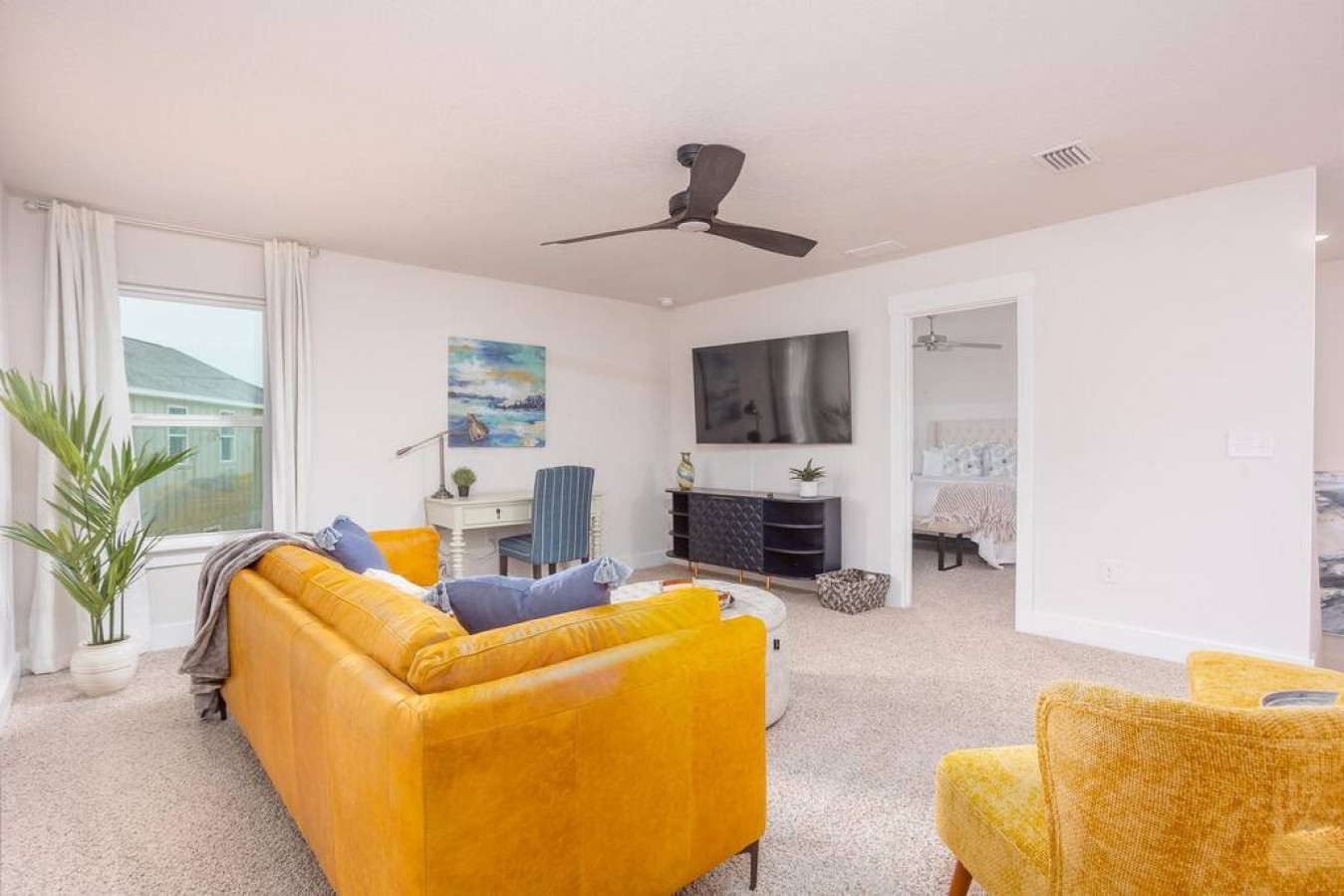 Everything you need to RELAX & GET COZY in this beautiful new beach home with COMFORTABLE FURNISHINGS, PREMIUM MATTRESSES, Samsung Smart TVs in every room and more await.