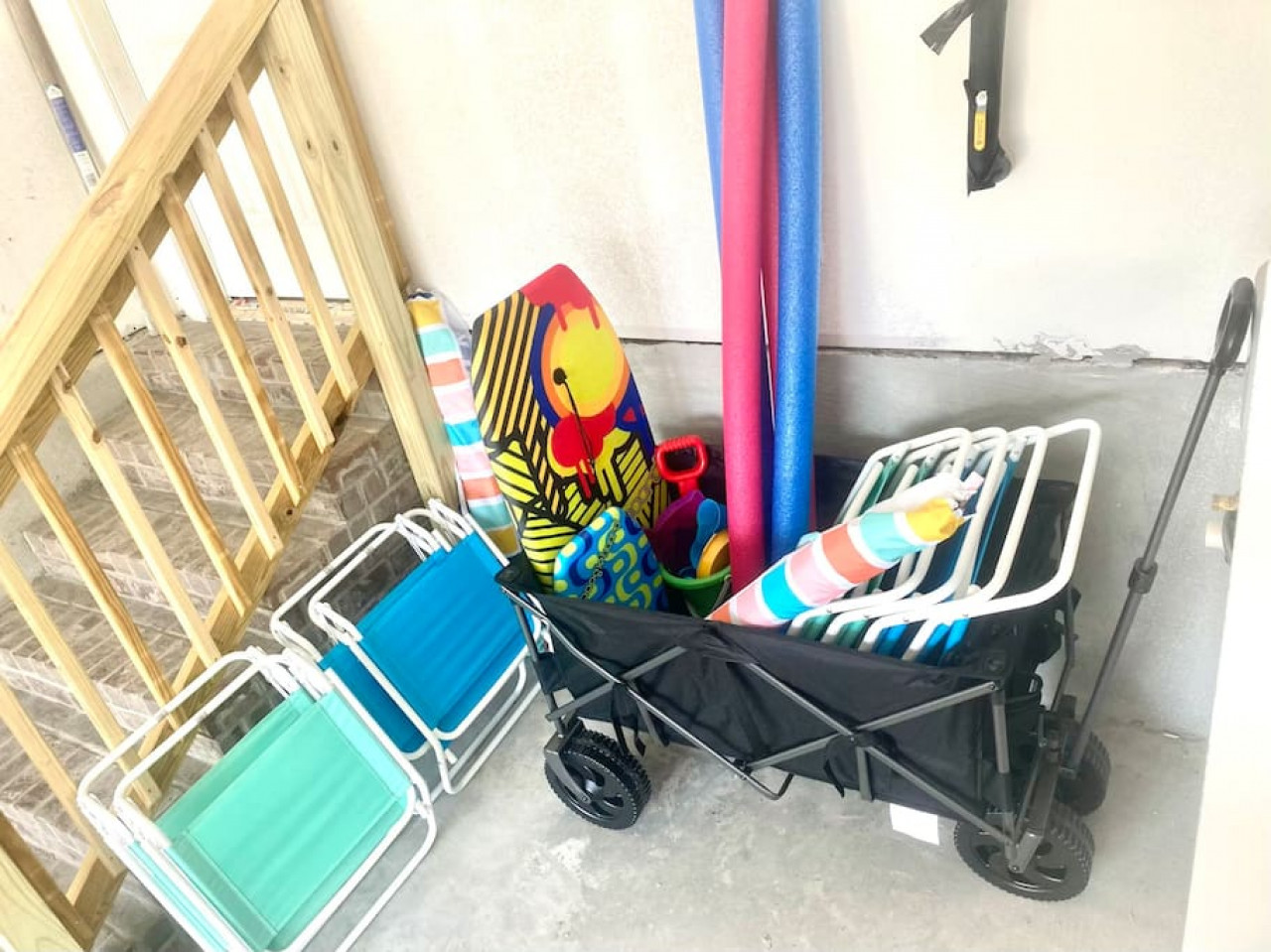 • Beach essentials, i.e., towels, beach chairs, umbrellas, beach wagon, noodles/floats, boogie boards, and other amenities